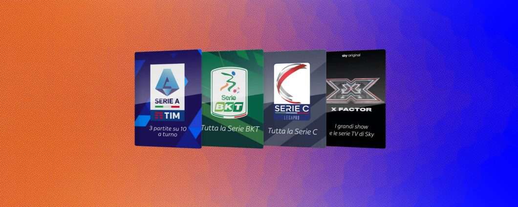 - Serie A TIM 23/24 con 3 partite su 10 ogni giornata, Serie BKT e Serie C al completo fino alla stagione 2024/25, il calcio europeo con le migliori partite di Premier League, Bundesliga e Ligue 1;