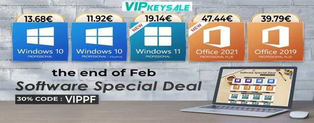 La fine del mese è l’occasione per una rinfrescata alle offerte VIPKeySale sulle migliori licenze software per la produttività quotidiana: prodotti come Windows e Office, ma anche antivirus e molto altro, possono essere trovati a prezzi imbattibili sfruttando semplicemente il codice coupon riservato VIPPF – attingendo così a codici senza scadenza, genuini e utili a mettersi immediatamente al lavoro sulla propria nuova postazione. Un esempio? Windows 10 Pro può essere acquistato con un prezzo tagliato addirittura del 91%. A voi scoprire tutte le altre offerte sfogliando i consigli disponibili in questo articolo.