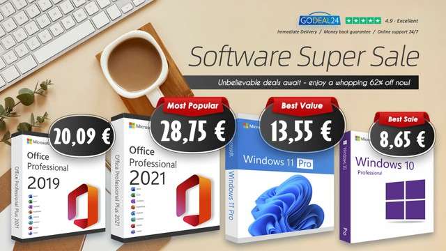 Sebbene l’Amazon Prime Day sia ufficialmente terminato, in questo momento Godeal24 offre ancora risparmi straordinari su chiavi di attivazione per software Microsoft come le suite Office, il sistema operativo Windows e altro ancora. Word, Excel, PowerPoint: ottieni tutti i programmi di cui hai bisogno da Office 2021 Pro Plus per aumentare la tua produttività ed efficienza con licenza a vita e tramite un pagamento una tantum di 28,75 €. Gli utenti Mac vogliono migliorare significativamente la loro esperienza informatica, quindi prendi in considerazione Office 2019 Home and Business per Mac! Ora bastano solo 29,01€! Godeal24 ti offre anche Windows 11 Pro originale per 13,55€, che è uno sconto enorme rispetto al prezzo ufficiale. Tutte le chiavi di Godeal24 sono chiavi funzionanti al 100%. Se ci sono chiavi sbagliate in rari casi, Godeal24 ha anche un rimborso del servizio post-vendita!