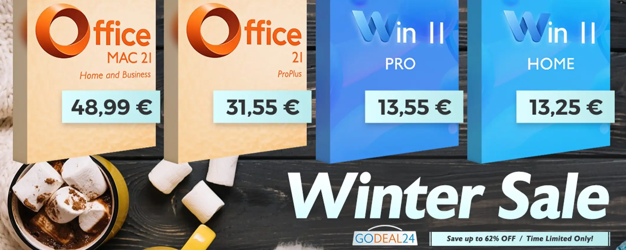 Lascia che la promozione di Godeal24 ti scaldi quest’inverno! Gli sconti fino al 62% sono validi solo per la settimana in arrivo! Che sia Office o che sia WinOS, troverai licenze autentiche tramite la vendita invernale Godeal24. L’app gratuita di Office non durerà a lungo. MS Office 2021 Professional ti offre un completo e affidabile toolkit per una vera produttività a un prezzo incredibilmente raro di 31,55€ senza costi mensili. Office 2021 supporterà funzionalità di collaborazione di Microsoft 365, tra cui co-autori in tempo reale, supporto OneDrive e persino integrazione con Teams. Office 2021 presenterà anche un nuovo design di Office con un’interfaccia aggiornata, angoli arrotondati e schemi di colori che si allineano con l’interfaccia di Windows 11. Se hai un dispositivo Apple, non significa che tu debba perdere lo sconto di Godeal24. Puoi ottenere una licenza a vita per Office 2021 Home and Business per Mac a soli 48,99€ (prezzo originale Microsoft pari a 219€). Queste licenze a vita ti danno accesso a queste app per tutta la vita con un download diretto. Questo significa che non ci sono costose quote di abbonamento e nessun problema di connettività cloud da gestire. Oppure puoi abbracciare le ultime innovazioni con Office 2024 Home & Business, che offre nuovi strumenti basati su IA. Acquista oggi stesso un Office 2024 Home and Business a soli 89,99€. Se l’aggiornamento è nel tuo calendario, questo è il momento perfetto. Lo sconto non durerà così a lungo! Sarà una scelta saggia fare l’ordine ora!