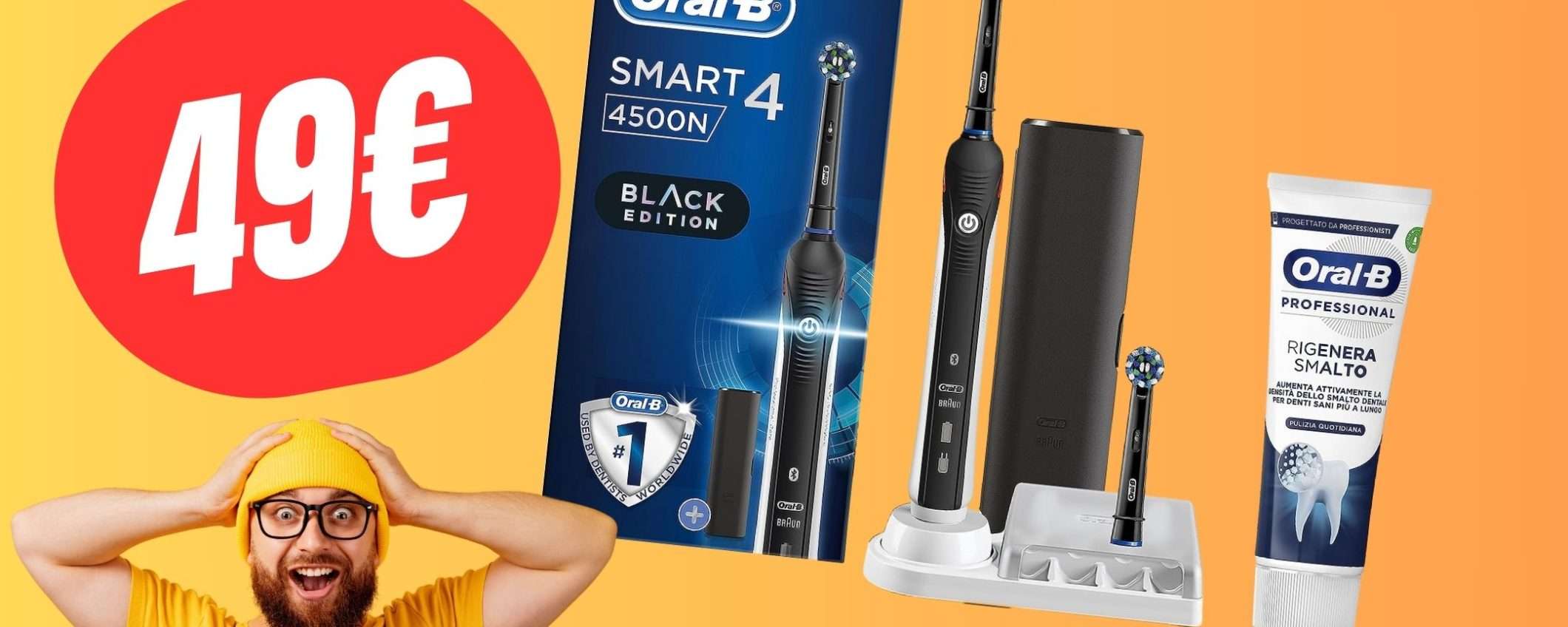 Non lasciarti scappare questa incredibile occasione: lo spazzolino elettrico Oral-B Smart 4 4500N è attualmente disponibile in kit su Amazon a soli 49,99€, invece del prezzo regolare di 134,99€, risparmiando così un 63%. Questo affare è un’opportunità imperdibile per chi desidera ottenere una pulizia dentale impeccabile grazie a uno spazzolino elettrico di alta qualità.