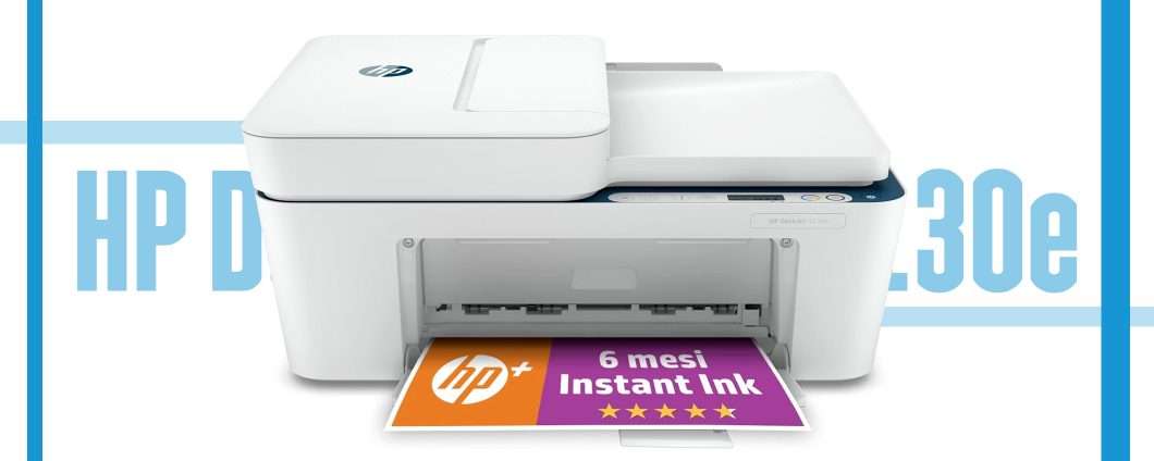 HP DeskJet Plus 4130e è una stampante a getto d’inchiostro con supporto alla connettività Wi-Fi per gestire i documenti senza cavi, anche da smartphone e tablet: oggi è protagonista di un’offerta eBay che permette di acquistarla approfittando di uno sconto del 39% sul prezzo di listino. È incluso nella spesa un abbonamento di sei mesi al servizio HP+ che permette di ottenere cartucce gratis una volta esaurite quelle presenti nella confezione.