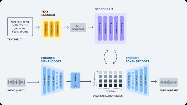 Difatti, Meta ha reso disponibili tre modelli: MusicGen, AudioGen e EnCodec. Il primo opera sulla base di musica di proprietà di Meta e alcuni file protetti da diritto d’autore al quale il gigante di Mark Zuckerberg ha ottenuto accesso. Il secondo genera suoni ambientali ed effetti sonori come il clacson di un’auto o il rumore di passi su varie superfici. Infine, EnCodec migliora la qualità della musica generata riducendo gli artefatti.