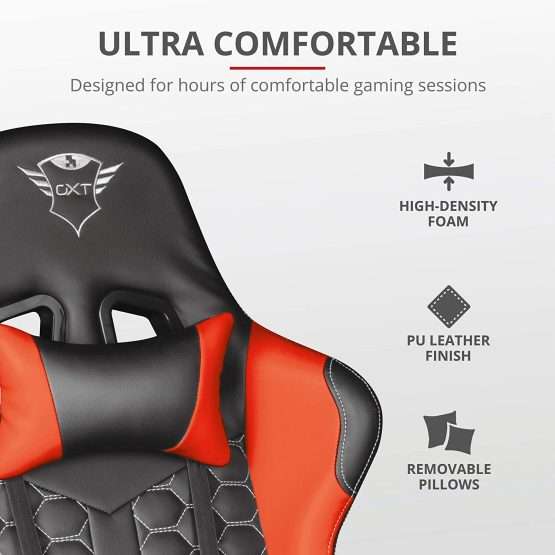 La Sedia Gaming GXT 708R di Trust Gaming ti permette finalmente di passare le ore alla scrivania senza avere fastidio alla schiena. È perfetta per giocare in tutta comodità mantenendo una giusta postura davanti alla scrivania e senza scendere a compromessi in gusto di estetica.