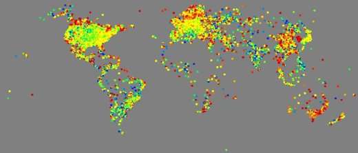 Dallo studio è inoltre emersa una mappa della comunicazione globale che si intrattiene sul canale Messenger: le aree più attive, individuate in base alla mappatura degli indirizzi IP degli utenti, sono Europa, Nordamerica e Giappone . Ma anche i paesi emergenti, le aree del mondo afflitte da digital divide, sono timidamente punteggiate dalla presenza di utenti che comunicano via instant messaging.