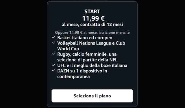 C’è anche il piano START a 11,99 euro al mese (sempre sottoscrivendo un abbonamento annuale) che però non include la Serie A. Per tutti gli altri dettagli, visitare la pagina dedicata.