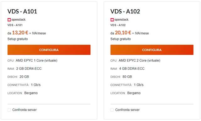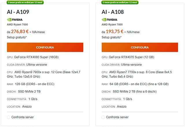 Aruba propone molte soluzioni differenti, basate su OpenStack, hardware Dell, AMD, Intel, Lenovo e NVIDIA, anche per i casi d’uso inerenti all’ambito dell’intelligenza artificiale. Si parte da soli 13,20 euro al mese (+ IVA).