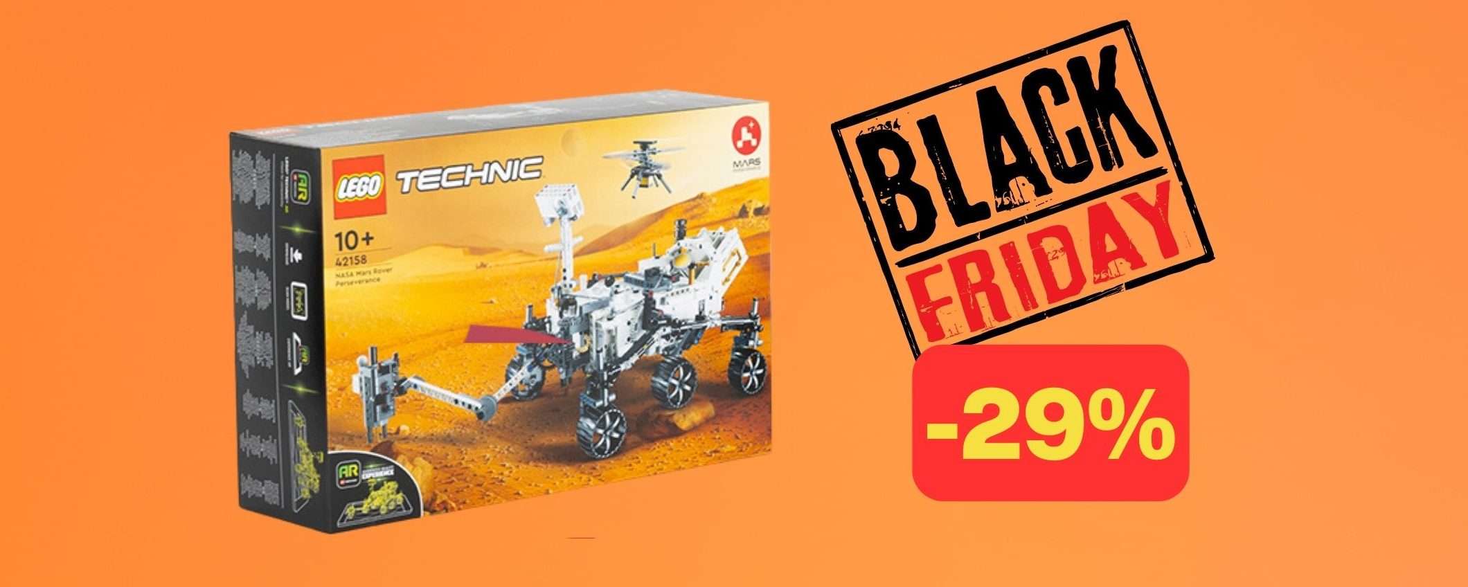 Strizziamo l’occhio agli appassionati LEGO e di esplorazioni spaziali con il set LEGO ufficiale che riproduce il Mars Rover Perseverance della NASA e che grazie agli sconti Black Friday di Amazon può essere tuo a 67,68 euro invece di 94,99.
