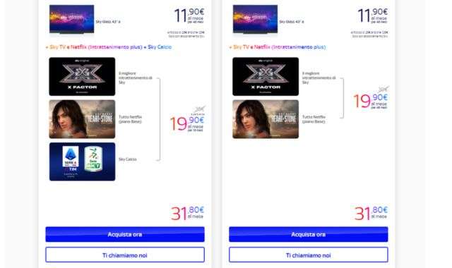 Il tutto può essere abbinato ad un pacchetto Sky TV e Netflix (piano Base) insieme a Sky Calcio a partire da soli 19,90 euro al mese per 18 mesi. Questa offerta ti darà accesso al meglio del mondo sportivo, insieme ai contenuti originali di Netflix e alle esclusive di Sky TV.