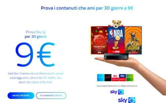 Tutto questo comodamente da un box collegato alla smart TV e per 30 giorni al modico prezzo di 9 euro, tempo più che sufficiente per testare la validità di Sky Q senza più rinunciarci. Basta entrare QUI e approfittarne.
