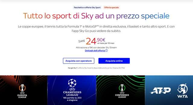 Sky Sport + Sky TV in offerta a 24,90 euro al mese