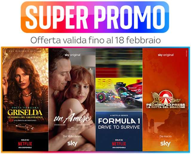 La promozione include tutte le serie e gli show di Sky TV come Un amore con Stefano Accorsi e la nuova edizione di Pechino Express che prenderà il via a breve, senza dimenticare l’intero catalogo di Netflix sempre accessibile in streaming dai propri dispositivi, con nuove uscite come Griselda. Inoltre, grazie all’applicazione Sky Go, è possibile vedere subito i programmi trasmessi da Sky. Per maggiori informazioni rimandiamo alla pagina dedicata.