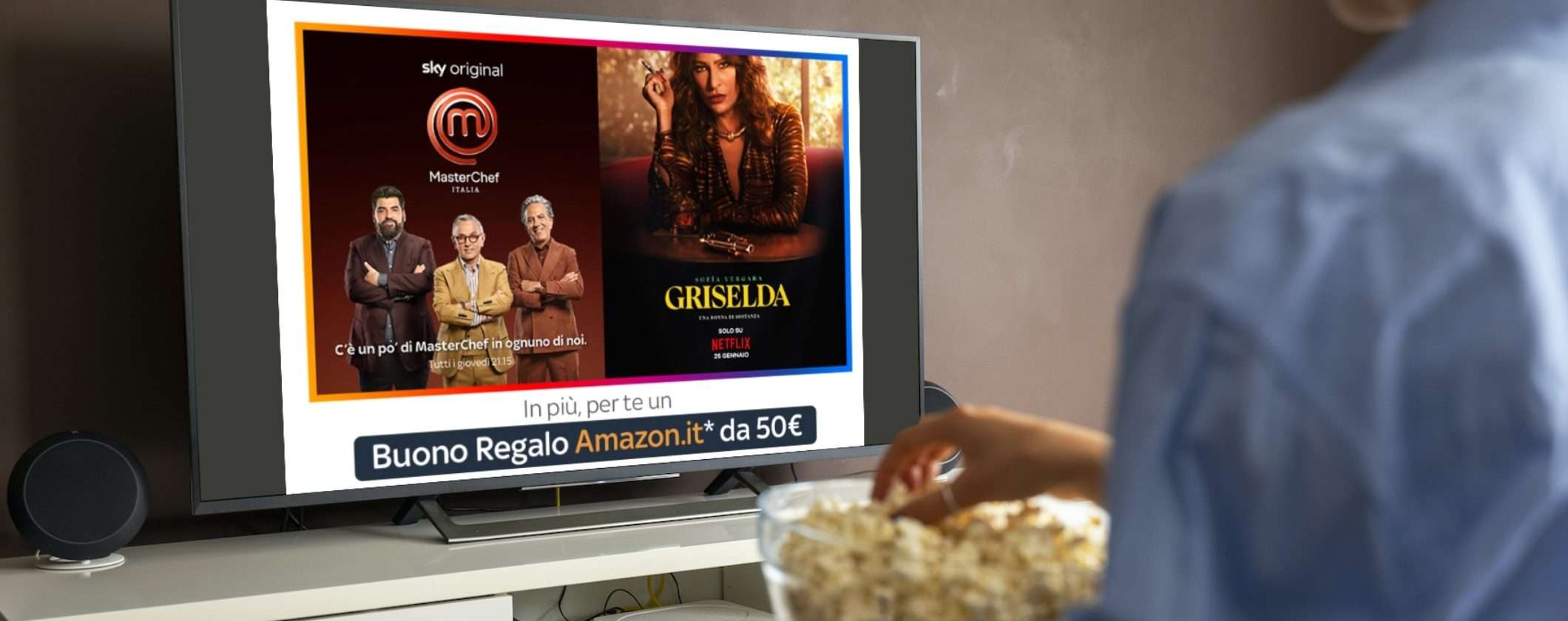 Ma i vantaggi non sono certo finiti qui. Infatti, grazie a questa occasione, attivando oggi stesso Intrattenimento Plus, ottieni un Buono Amazon del valore di 50 euro da utilizzare sul sito Amazon.it per acquistare qualsiasi prodotto desideri. Insomma, tanto intrattenimento e un regalo pazzesco solo per te. Approfitta immediatamente di questa iniziativa golosa. Scopri tutti i dettagli.