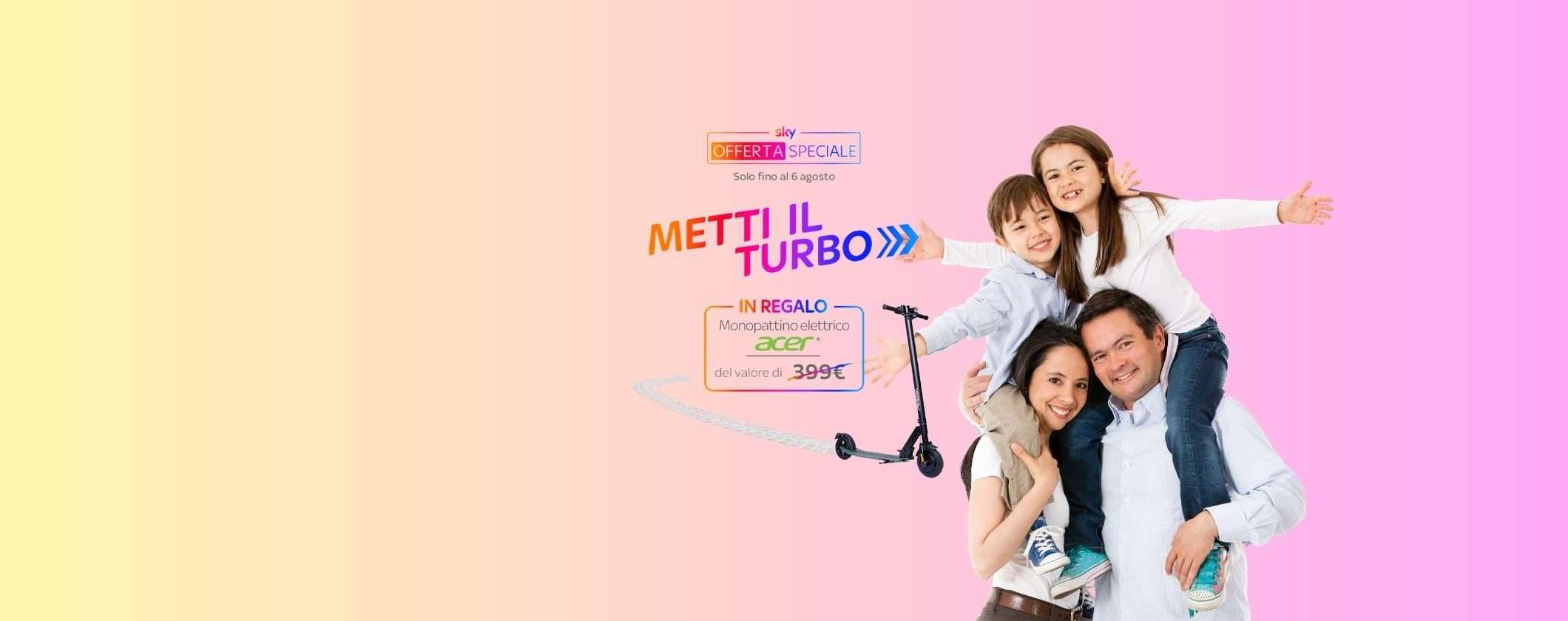 Il prezzo è bloccato per 18 mesi, ma hai solo poche ore per attivare questo incredibile bundle. Metti il turbo e assicurati tantissimi contenuti per tutta la famiglia e il miglior sport sempre in diretta esclusiva. Cosa stai aspettando? L’offerta sta per scadere! Non rimanere con un pugno di mosche in mano. Risparmia e goditi anche il Monopattino Elettrico Acer in omaggio.