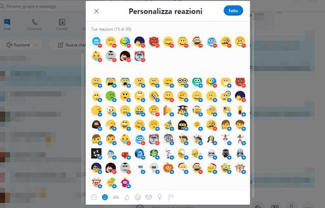 Il debutto della versione 8.64 di Skype porta con sé una feature che interviene su una modalità di interazione dallo stile marcatamente social: quella legata alle reazioni che è possibile attribuire ai messaggi nelle chat. In altre parole, le faccine che consentono di esprimere apprezzamento, dissenso e così via rispetto a quanto scritto dagli altri utenti. Ora è possibile personalizzare quelle mostrate dal box che si apre per il loro inserimento rapido.