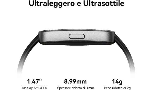 Inoltre, la durata della batteria è davvero impressionante. Con un’autonomia fino a 14 giorni, non dovrai preoccuparti di doverlo ricaricare continuamente. E quando arriva il momento di ricaricarlo, la ricarica rapida ti stupirà: in soli 45 minuti avrai la batteria al 100%, un 30% più veloce rispetto al modello precedente. Se sei di fretta, addirittura 5 minuti di ricarica ti daranno due giorni interi di utilizzo.