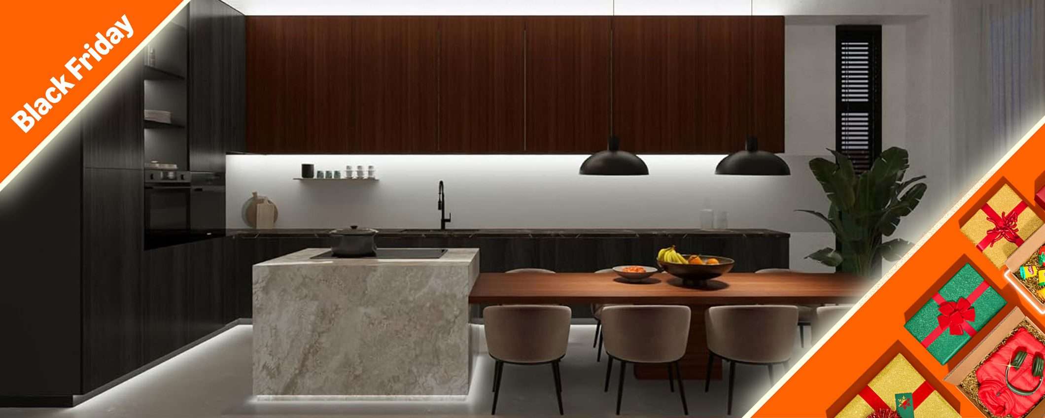 Il kit base Philips Hue Indoor che contiene una striscia LED da 3 metri è in sconto del 40% su Amazon per il Cyber Monday. Si controlla anche tramite applicazione mobile o comandi vocali, è compatibile con gli ecosistemi smart di Alexa, Assistente Google e Apple HomeKit. Perfetta per le aree più grandi, utilizza la tecnologia RGBWW per riprodurre in modo naturale sia i colori che il bianco. Ovviamente, il risparmio energetico è una priorità, con i consumi ridotti al minimo indispensabile per il risparmio in bolletta.