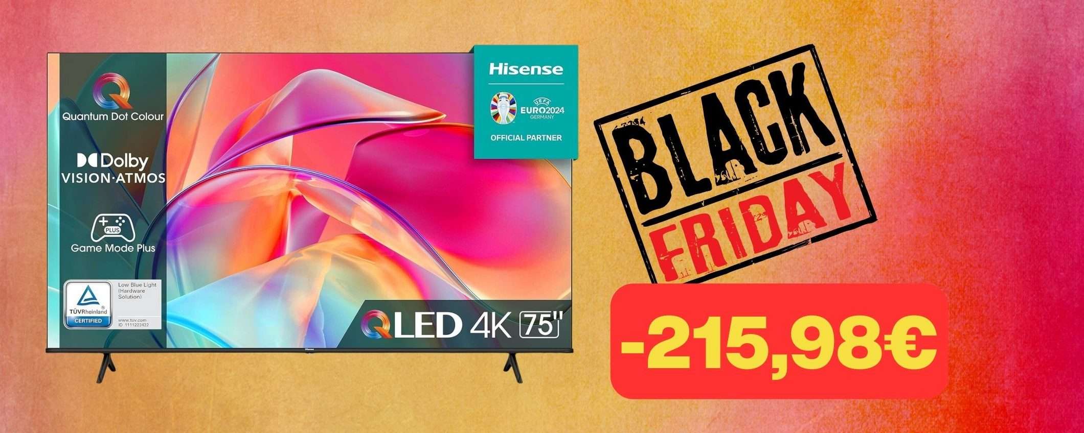 La settimana del Black Friday di Amazon continua con una strepitosa occasione se stai cercando di rinnovare il tuo salotto in modo eccezionale. Questa smart TV Hisense da 75 pollici con risoluzione 4K può essere tua con uno sconto di 215,98 euro da applicare sul prezzo di listino di 899,90: in pratica la pagherai soltanto 683,92 euro. Tutto quello che devi fare è attivare il coupon che trovi in pagina.