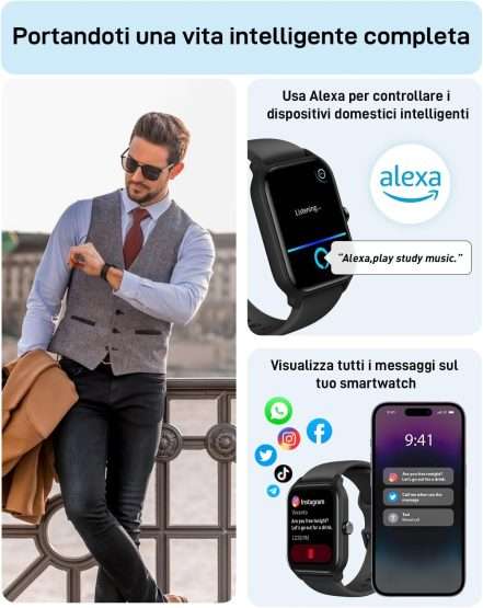 Uno smartwatch da mettere al polso per avere un assistente che sia completo a 360°. Molto più di un semplice accessorio tecnologico con i suoi sensori avanzati che tengono sotto controllo non solo la salute ma anche l’attività sportiva e la tua vita quotidiana. Le chiamate Bluetooth sono forti, ma l’integrazione di Amazon Alexa è quello che lo rende vincente. Una doppia occasione su Amazon, apri la pagina e spunta il coupon per averlo a soli 39 euro.