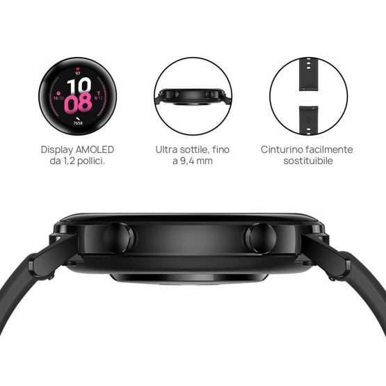 Non mancano all’appello le notifiche smart e altre funzioni che ti fanno stare al passo con i tempi senza necessità dello smartphone. In più hai il GPS integrato.