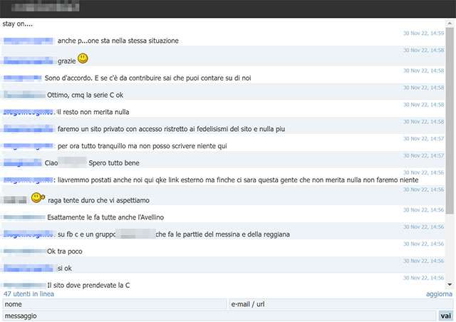 Non riportiamo l’indirizzo completo del sito oscurato, sebbene non sia affatto difficile risalirvi. Il motivo è presto detto: per ragioni non del tutto chiare, al momento rimanda a una chat in cui ci si sta organizzando per rimettere in piedi l’attività. Non sarebbe la prima volta che accade. Qui sotto uno screenshot.
