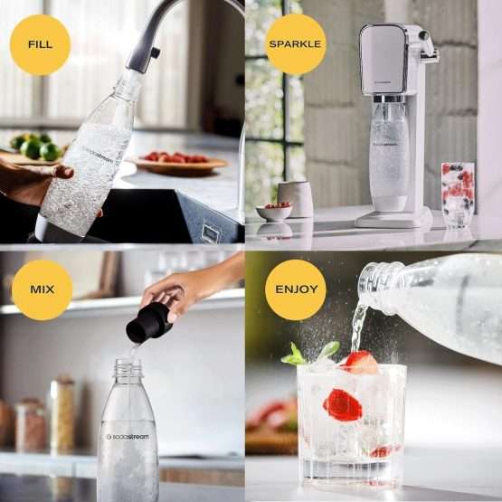 Non tornare mai più dalla spesa con delle casse di acqua, non quando puoi creare la tua bottiglia frizzante direttamente a casa. Il bello di avere un dispositivo Sodastream è proprio questo: gustarti bollicine quando più ne hai voglia senza il rischio che possano svanire nell’aria. Il modello ART? Una vera opera con dimensioni compatte e design da esibire.