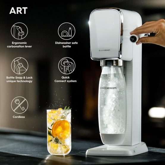 SodaStream ormai è sul mercato da anni e rimane il marchio e il prodotto vincente per chi non può fare a meno delle bollicine nell’acqua. Il modello ART che ti propongo oggi è comodo, con dimensioni compatte e soprattutto con un design che si fa apprezzare anche se messo in bella mostra. Quasi diventa un obbligo sistemarlo nel posto più appariscente della tua cucina.