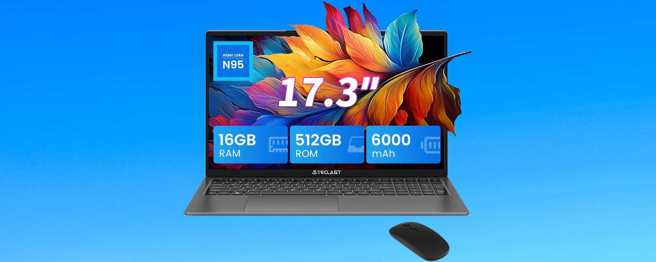 Cerchi un nuovo laptop per studiare, lavorare o per il tempo libero senza spendere troppo? Oggi su Amazon è in offerta a soli 339,99 euro invece di 459,99 questo PC portatile del marchio Teclast con display da 17.3 pollici, processore Intel, 16GB di RAM e SSD da 512GB. Per averlo a questo prezzo devi spuntare la casella del coupon sconto che trovi in pagina.