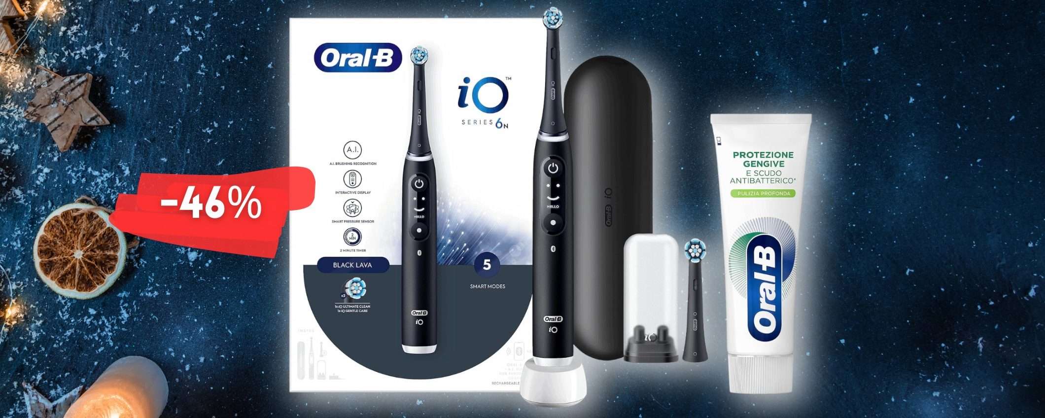 Che altro dire, collegati al volo su Amazon dove acquisti il tuo spazzolino elettrico Oral-B iO6 in kit completo a soli 119€, lo sconto del 46% è un affare.