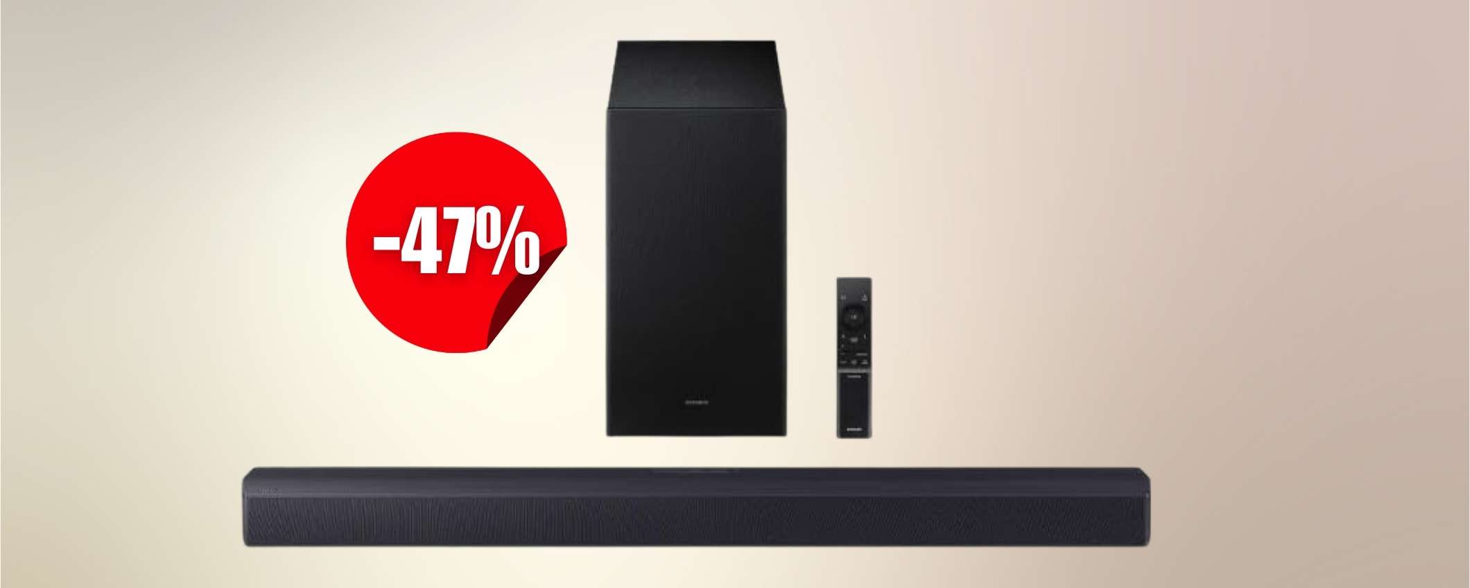 Un vero affare grazie al ribasso del 47% presente su Amazon. Compra la tua Soundbar di Samsung e non fartela scappare:portala a casa a soli 159€.