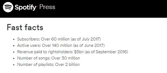 Il servizio ha ormai acquisito una degna maturità testimoniata anche dall’elevato numero di utenti che usano il servizio attivamente in oltre 60 Paesi. Considerando anche gli utilizzatori della versione gratuita il suo pubblico vanta oltre 140 milioni di persone . La forza del servizio è rappresentato evidentemente dalla facilità di utilizzo, dalla vastità dell’archivio (oltre 30 milioni di canzoni) in continua espansione e dal prezzo contenuto del servizio in abbonamento (meno di 10 euro al mese).