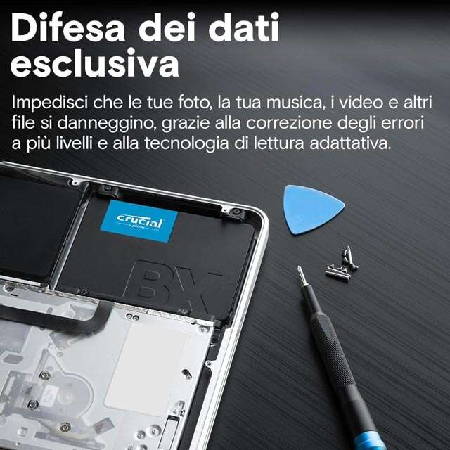 Non lasciarti sfuggire lo sconto del 35% sul listino disponibile in questo momento che porta l’unità SSD da 1 TB della gamma Crucial BX500 al suo prezzo minimo storico. È merito di Amazon, che oggi propone un’offerta imperdibile, tendendo così la mano a chi vuole eseguire l’upgrade hardware del PC in uso o assemblarne uno nuovo.