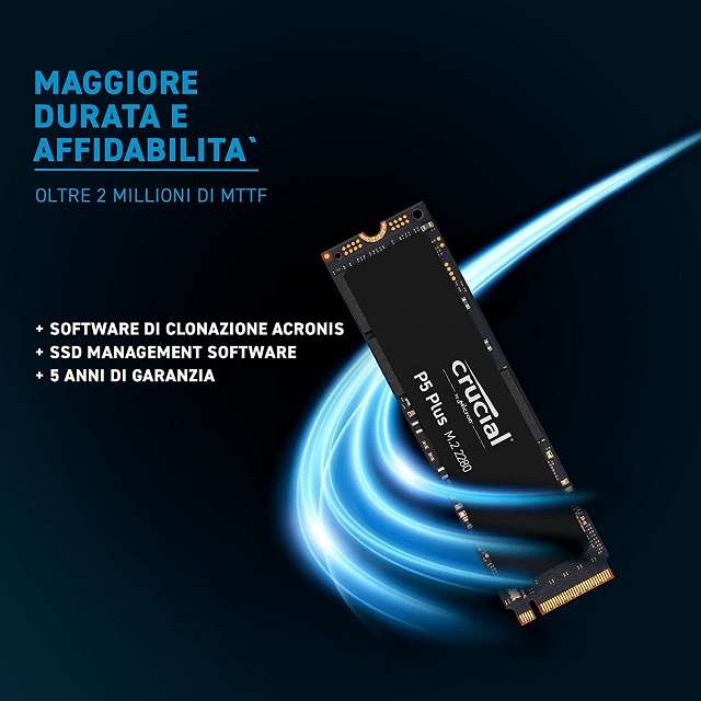 Quella di oggi è una promozione che ha davvero dell’incredibile: grazie a uno sconto del 63%, il Crucial P5 Plus 2TB è disponibile su Amazon a soli 112 euro per un risparmio di ben 190 euro sul prezzo di listino. Le consegne sono rapide e gratuite in tutta Italia con Amazon Prime e non manca la possibilità di pagarlo a rate con Cofidis.