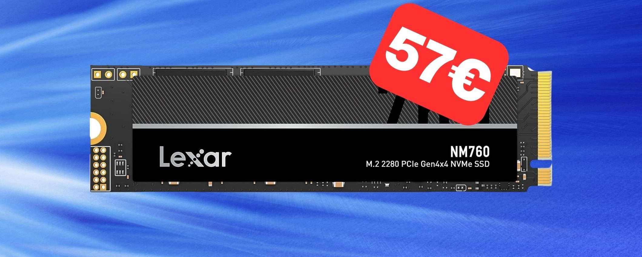 Per Natale regalati più spazio e velocità per il tuo PC, ma anche per la tua PlayStation 5, con la SSD Lexar NM760 PCIe NVMe da 512GB che puoi acquistare oggi in offerta su Amazon a soli 57,74 euro. Un prezzo ridicolo per un disco che è pronto a regalarti prestazioni di altissimo livello.