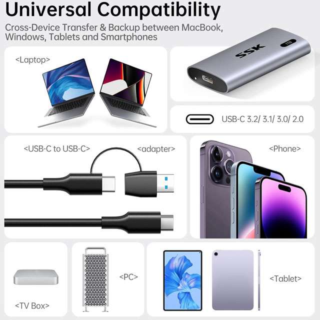 Con una velocità di trasferimento che raggiunge i 550 MB/s, l’unità SSD portatile da 1 TB della gamma SSK SD450 è la soluzione ideale per spostare file di grandi dimensioni in modo rapido, così come per archiviare documenti e contenuti di ogni tipo con i backup periodici. Oggi è protagonista di un’offerta a tempo su Amazon che la rende più conveniente che mai. Include il cavo USB-C e l’adattatore USB-A.