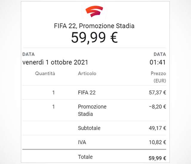 I clienti che hanno effettuato 20 o meno acquisti su Stadia Store riceveranno un’email per ogni transazione. I clienti che hanno effettuato 21 o più transazioni su Stadia Store riceveranno una sola email con il riepilogo di tutti i tentativi di rimborso.