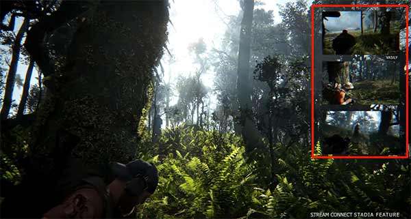 Per quanto riguarda la feature inedita, si tratta di Stream Connect. Ne abbiamo parlato a fondo nei mesi scorsi in un articolo dedicato: si tratta sostanzialmente della possibilità di vedere sovrapposti in tempo reale al proprio gameplay i riquadri con le azioni dei propri compagni, così da poter coordinare il team durante le partite in cooperativa. Un esempio concreto nello screenshot allegato di seguito.