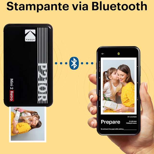 Grazie al forte sconto applicato in automatico puoi acquistare la stampante fotografica portatile KODAK Mini 2 Retro al prezzo di soli 80,74 euro. Scegli la colorazione che preferisci tra Nero, Giallo e Bianco, la spesa non cambia. L’articolo ha ricevuto oltre 9.300 recensioni sull’e-commerce, con un voto medio pari a 4,4/5.