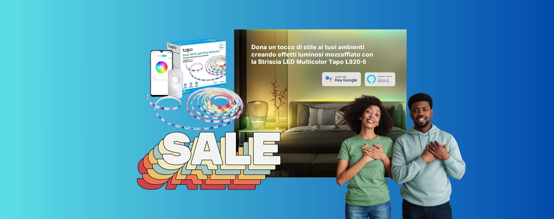 Dai più colore alla tua vita grazie alla Striscia LED Smart Tapo L920-5. Con 5 metri di LED rendi personale e funzionale qualsiasi angolo della casa che sia cucina, bagno, televisione o postazione computer. Dai libero sfogo alla fantasia. Oggi la acquisti al 25% di sconto. Approfittane subito su Amazon!