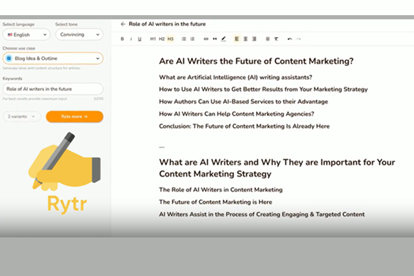 Rytr.me è uno strumento di supporto alla scrittura intelligente che può creare contenuti di alta qualità a partire da una semplice parola chiave. Alimentato da un linguaggio AI all’avanguardia, Rytr è in grado di generare contenuti unici e originali per qualsiasi settore.
