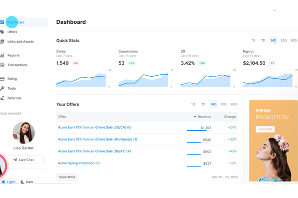 Prima di tutto Scaleo una piattaforma di marketing affiliato che consente di gestire e ottimizzare le campagne pubblicitarie online in tempo reale. Le sue funzionalità principali includono la creazione e il monitoraggio di offerte, partner, annunci e commissioni attraverso una dashboard unificata e intuitiva.