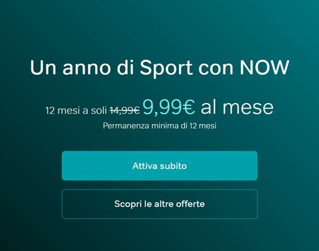 L’ultima domenica gli appassionati di sport hanno potuto godere del successo della Ferrari al Gran Premio d’Australia, dell’appassionante duello tra “Pecco” Bagnaia e Marc Marquez in MotoGP, e dell’ennesima vittoria di Jannik Sinner al secondo Masters 1000 della stagione. A questo proposito ti segnaliamo l’offerta del pass Sport di NOW, il pacchetto che consente ai suoi abbonati di vedere tutto lo sport di Sky live e on demand a 9,99 euro al mese per dodici mesi invece di 14,99 euro. Non è dato sapere fino a quando durerà lo sconto.