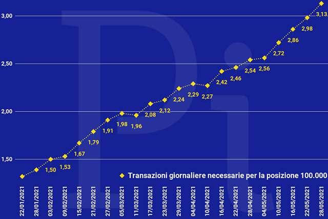 Provando a cimentarci in una previsione a fine giugno, stando ai dati odierni, dovrebbero essere 566 le transazioni necessarie per ottenere il Super Cashback. Non fatichiamo a immaginare una ulteriore accelerata nel corso delle prossime settimane.