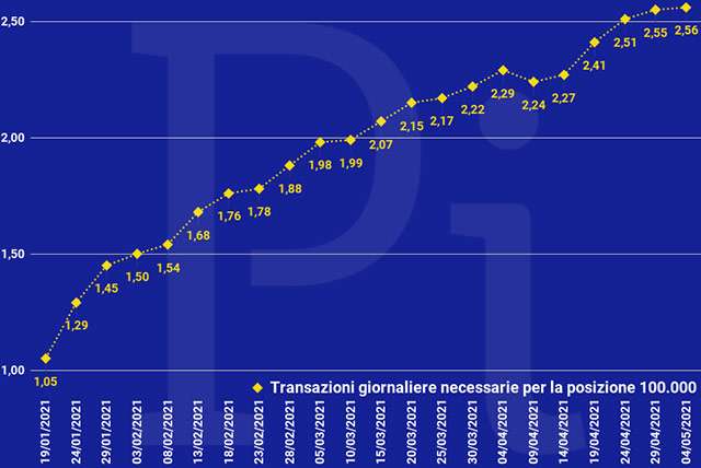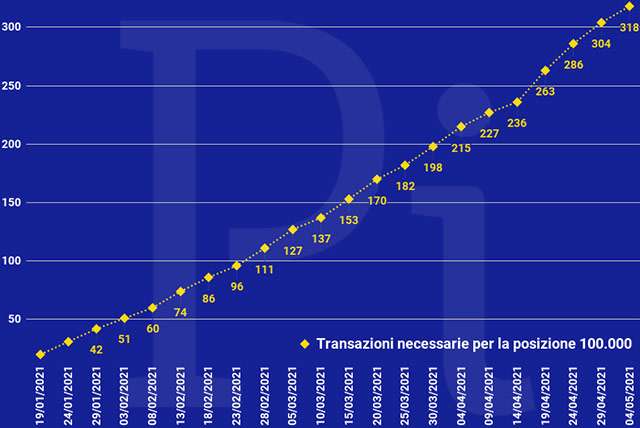 Aggiornamento (05/05/2021): il numero di transazioni minime è salito a quota 325, online un approfondimento sul reale numero di coloro che concorrono al bonus extra.
