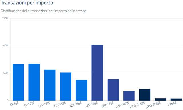 - oltre 300 euro: 3,8 milioni di transazioni.