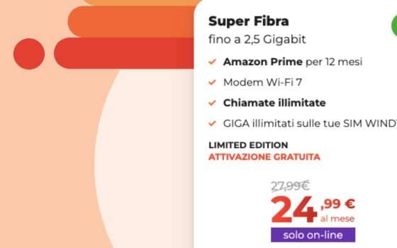 Super Fibra Limited Edition è disponibile solo online: basta verificare la copertura e attivare in pochi minuti. Per conoscere l’offerta completa di WINDTRE clicca qui.