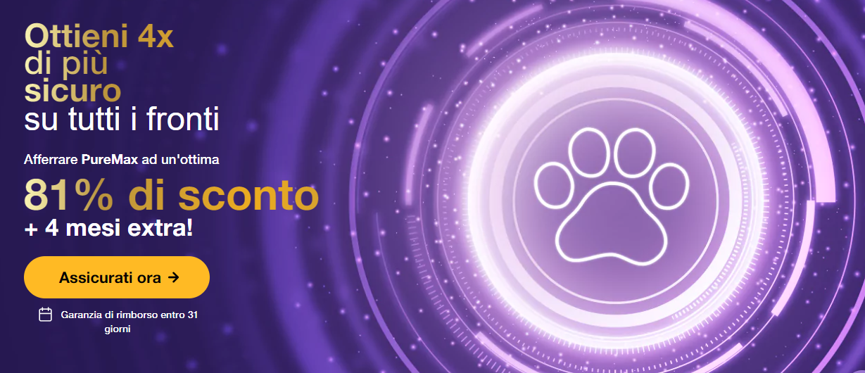 Se il tuo obiettivo da questo momento in poi è di proteggere con le unghie e con i denti la tua privacy online, non ti occorre altro che PureVPN. Adesso, con la SUPER OFFERTA, questo obiettivo è alla portata di mano: sconto dell’81% sul piano Plus da 2 anni, con ben 4 mesi extra gratuiti.