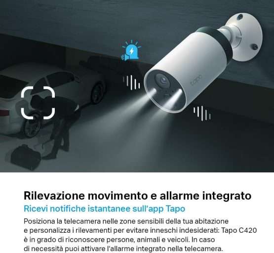 All’interno di questo prodotto trovi l’audio a 2 vie per comunicare a distanza, il rilevatore di movimento per identificare chi si intrufola senza permesso e allarme così da spaventarlo e mettere la tua abitazione al sicuro a 360°.
