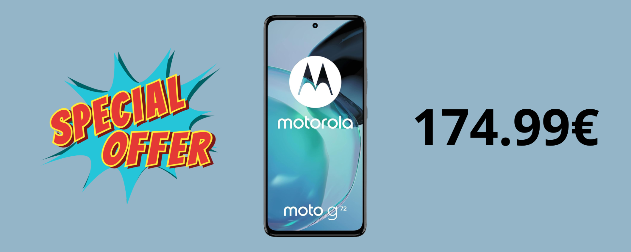 Il Motorola moto g72, noto per le sue grandi prestazioni e il bellissimo display, è ora disponibile ad un super prezzo di soli 174,99€ grazie ad uno sconto attivo ancora per poco su Amazon. Una ghiotta occasione per portarsi a casa uno smartphone con ottime caratteristiche in tutti i fronti ad un prezzo estremamente basso.