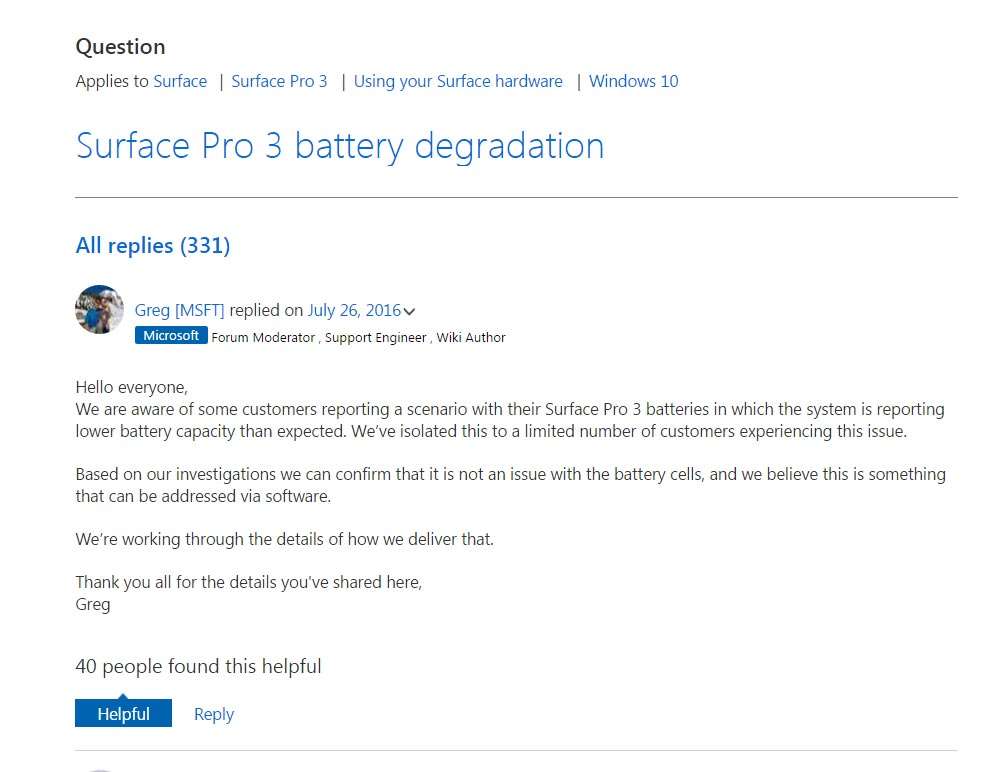 “Sulle base delle nostre ricerche, possiamo confermare che non si tratta di un problema legato alle celle delle batterie, crediamo invece che l’anomalia possa essere risolta attraverso una correzione del software.” scrive l’utente Greg in risposta alle decine di segnalazioni. Ulteriori informazioni su come Microsoft distribuirà l’eventuale patch saranno pubblicate sui forum, appena disponibili. Alcuni utenti possono quindi tirare un sospiro di sollievo, in particolare coloro per i quali la garanzia sta per scadere. Altri utenti hanno lamentato il pagamento della tariffa standard di 99 dollari , fuori garanzia, per investigare e risolvere il problema della scarsa autonomia. Microsoft ha dichiarato a tal proposito che si tratta di una politica non corretta. Anche se la garanzia è scaduta, per tali dispositivi la tariffa standard di assistenza non va applicata .